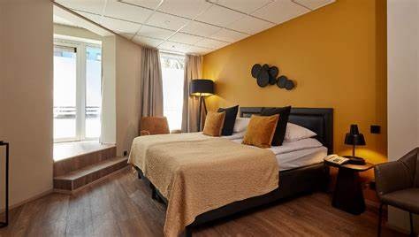 Elegant and stylish double superior room that are perfect for two guests. The rooms, which include parquet flooring and a gorgeously tiled bathroom with a shower, are decorated in a Scandinavian manner. Every room comes equipped with a phone, minibar, satellite TV, and free Wi-Fi internet, a kettle, coffee, tea and other amenities.