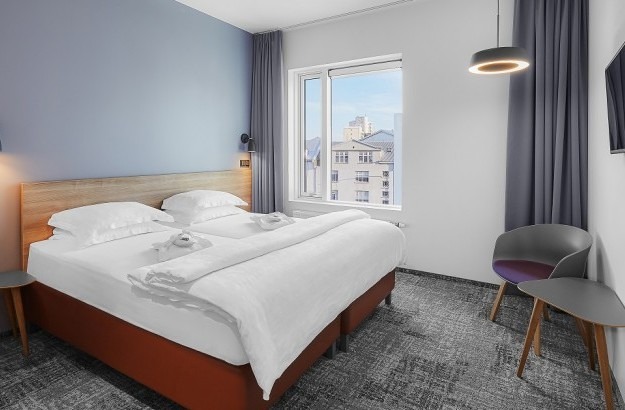 Hotel Cabin is well located, just 700 meters from Laugardalslaug swimming pool and 1,5 km from the city centre. Our Standard twin rooms are very compact, about 10m2. They are equipped with basic amenities. Please note that some standard rooms have curtained window facing the hallway. Amenities include two single beds, 35-inch-flat-screen TV, telephone, clothes hanger, chair, free WiFi, private bathroom with a shower, hair- & body soap and towels. Cabin Hotel has a buffet restaurant and a lobby bar.